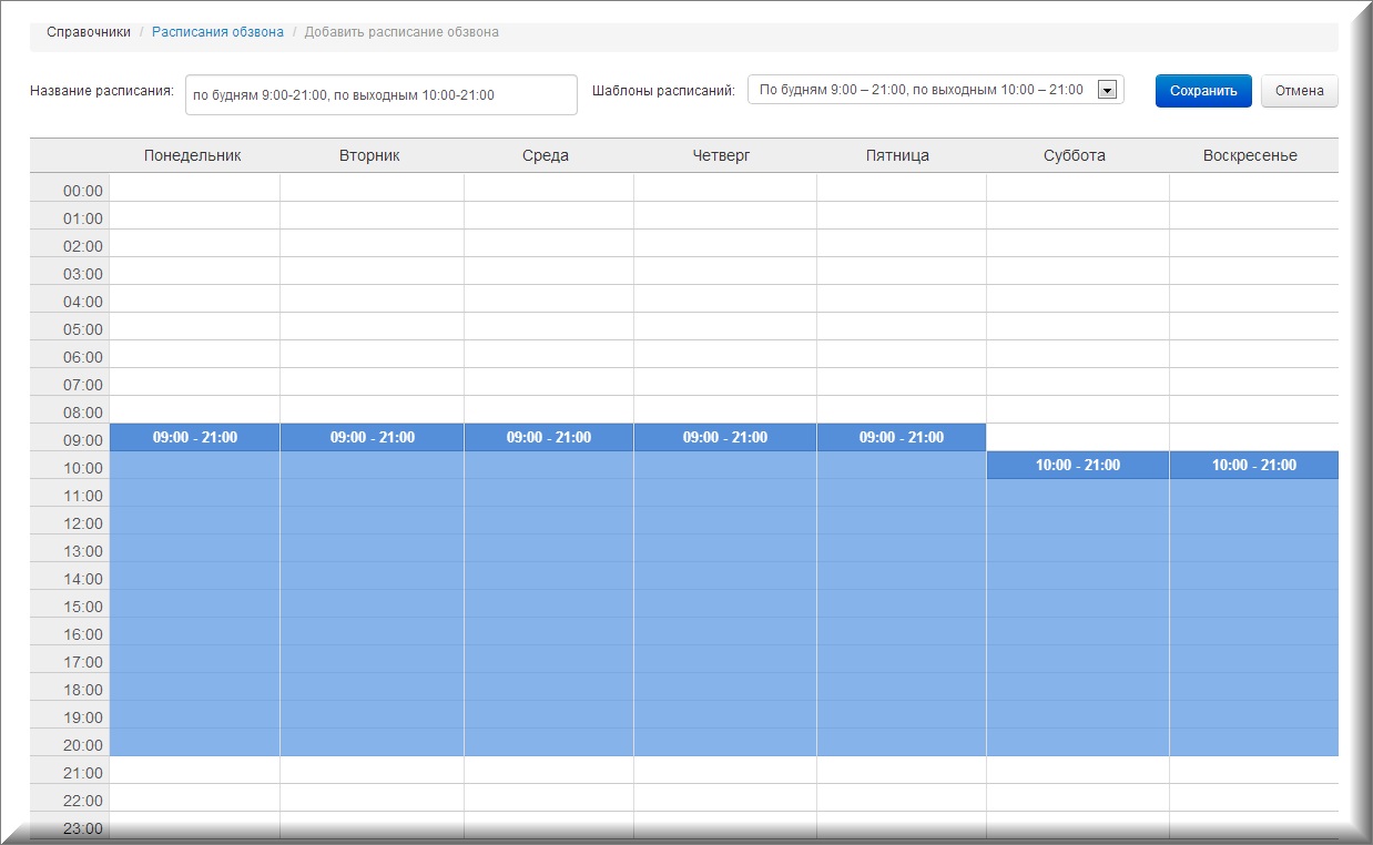 • ведение справочников – поддержка расписаний обзвона, возможность добавлять новые типы телефонов, типы и темы для кампаний);