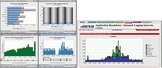 nGenius предоставляет наглядные доказательства успешного функционирования каждого критичного сервиса и приложения, а также их влияния на сетевую инфраструктуру, помогая тем самым проактивно обнаруживать потенциальные проблемы, влияющие на штатное функционирования сервисов. Анализируя поведение сетевых приложений в контексте с остальным трафиком в сети, можно сделать выводы о том, где, когда и почему качество работы с приложением ухудшается, или количественно подсчитать влияние каждого конкретного приложения на загрузку сети и на другие приложения с целью оптимизации потоков данных в сетевой инфраструктуре.